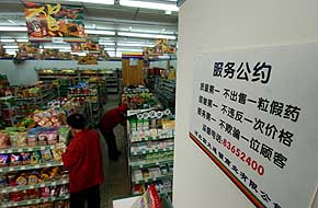 石家莊一家便利店內張貼著“不出售一粒假藥”的承諾。本報記者 鞏志宏 攝
