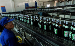 工人正在青稞啤酒生產線上工作。本報記者:王攀