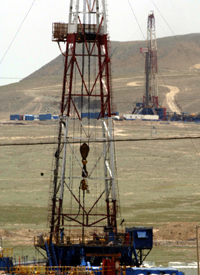 石油井架在新疆準噶爾盆地鉆探。(本報資料照片) | 記者近期在西北調查發現,以煤炭、石油、天然氣和電力為主導的能源產業近年來在西北地區發展迅猛,已成為支柱產業,在這期間銀行信貸資金大量進入能源領域,能源金融資金的集中度越來越高,銀行信貸資金繼房地產貸款、高校建設貸款后又出現了新的“壘大戶”現象,能源金融潛在的風險正變得越來越大。