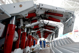 三一重裝正在研發的產品包括采煤機、液壓支架、刮板運輸機、礦用車輛等綜采成套設備,預計今年下半年推出,另外一個成套全自動聯合采煤機組,目前正在試驗階段。三一重裝營銷公司營銷管理部經理龍峰分析,當前掘進機市場容量有限且利潤空間小,而做一個成套設備售價則在億元以上,其利潤非?捎^,做成套產品已是煤機市場的大勢所趨。三一重裝的目標是打造一個“煤炭設備的百貨店”。