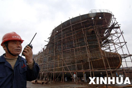 浙江農民在造大船的過程中,從低到高,從土到洋,全面實現了技術飛躍,彰顯出駕馭重工產業不凡的實力。(本報資料照片) | “無煙工廠”、“不占土地資源的產業”、“一個產品產值一個億”……這些環保、低成本、高效益的大好事全被一些浙江農民沾上了。這是因為浙江農民有膽有識投巨資,敢闖敢干造大船。