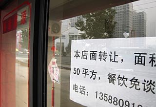 | 1月8日,杭州市鬧市區的一個房產中介公司打出了轉讓店面廣告。隨著近期二手房地產市場遇冷,一些規模小的房產中介紛紛退掉位于鬧市區的店面,轉而尋找成本更低的地段另謀發展。新華社記者