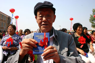 失地農民拿到了政府為其辦理的醫療保險。新華社記者:江威