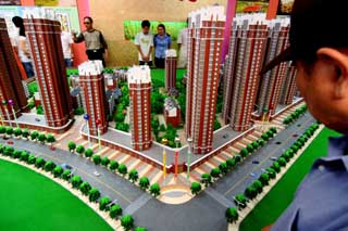 隨著奧運的結束和“金九銀十”的到來,商品住宅成交量是否能夠走出低谷,還需拭目以待。圖為市民在日前開幕的中國·吉林房屋展示交易會上觀看樓盤模型。新華社發(朱萬昌