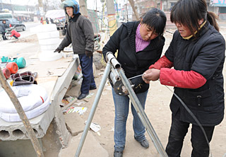 | 2月3日,河南省長葛縣董村鄉一家農具商店生意興隆。隨著旱情的加重,越來越多的農民到集市上選購澆水灌溉工具,投入抗旱保苗。新華社記者