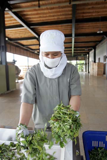 以開發高端旅游產業聞名的云南柏聯集團2007年進入瀾滄縣惠民鄉,在景邁山腳建造了一座占地7000多平方米、極具現代氣息的“普洱茶莊園”;走進莊園,堪稱一次愉快的普洱茶工業之旅———車間嚴格按照萎調、殺青、揉捻、包裝等等十余道生產工序區分開,每個車間均配備了一流的機械設備,進行流水線操作,40余名工人必須穿上一體化工作服、洗三次手、酒精消毒才能獲準進入。
