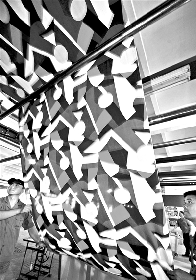 在浙江省紹興縣廣豐印染有限公司印花車間,工人們在生產出口歐美市場的印花布。新華社記者譚進