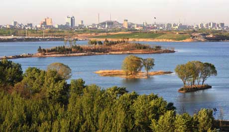 漫步大南湖,隨處可見生態復原的痕跡和蹤影。據南湖生態區環境管理委員會工作人員介紹,南湖公園目前已有鳥類49種,包括白頭硬尾鴨和金腰燕。 在南湖公園的湖泊岸邊,人們還可以看到一種國內罕見的生態護岸,這是清華大學的一項專利技術。制造這種生態護岸的材料,不是傳統的水泥和磚石,而是干枯廢棄的樹枝、樹杈和樹干!罢麄南湖的護岸上面,沒有一點水泥、沒有一塊磚。對整個水面的污染很小,或者說幾乎沒有!蹦虾鷳B城環湖路景觀工程項目經理張勝夫說。 南湖公園的潛在益處不僅是生態環境方面的改善!罢驹谶@里,我仿佛聽到了唐山從傳統工業文明邁向現代生態文明的跫然足音!焙颖笔∥N、唐山市委書記趙勇在接受記者采訪時直抒胸臆。 “如果把震后重建比作唐山的第一次涅槃的話,這次的城市轉型則是唐山發展的第二次涅槃,從傳統發展轉向科學發展,可謂正當其時!壁w勇認為,大南湖開發建設能為這種轉型提供強大動力。 水天一色,柳綠花紅,景色宜人。隨著南湖公園向公眾正式開放,唐山百姓親身體驗到了唐山轉型帶來的環境之變。而唐山市為轉型所進行的“一攬子”計劃一旦成形,其效應不是單純的生態景觀所能涵蓋的。 唐山市城鄉規劃局局長林澎從專業角度進行了解釋。他說,一方面南湖公園距離城市商業中心唐山百貨大樓僅有1公里,生態城建設可直接影響、帶動城區改變引資結構,發展新興產業;另一方面湖區周邊擁有大量可開發的土地資源,為城市發展提供了足夠空間,優勢潛力巨大。隨著南湖開發建設逐步完善,南湖生態城給城市帶來的效應會進一步擴散,將為唐山轉型提供強大動力。這已成為唐山人的共識。 大南湖公園不僅使唐山城市生態環境大為改觀,也為唐山百年工業文明融匯生態文明提供了一個現實樣本。據了解,到今年年底,南湖生態城核心景觀將全部建成。到2015年,南湖生態城就將擁有40萬左右的城市居民,高端服務業、文化創意產業將在這里蓬勃興起,成為拉動唐山經濟社會發展的強大引擎。