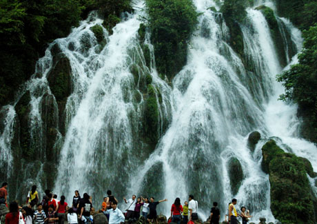 荔波遺產地內的小七孔景區內的拉雅瀑布。 新華社記者:楊俊江