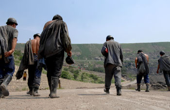 7月27日,海州露天礦最后一批工人走在下班的路上,隨著海州露天礦最后殘煤的運出,這些工人將和這個“大坑”告別。當日,遼寧省阜新市海州露天煤礦國家礦山公園正式開園,從而使這個當年亞洲最大的露天煤礦變身為工業遺產主題公園。新華社記者 姚劍鋒