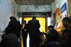 逼仄的投注站里,彌漫著香煙的味道?傆心敲磶讉人或十幾個人“駐守”在這里,他們對著懸掛在墻上的福彩雙色球走勢圖苦思冥想,間或用筆在紙上“推算”,也有一籌莫展的,就那么無所適從地觀望。