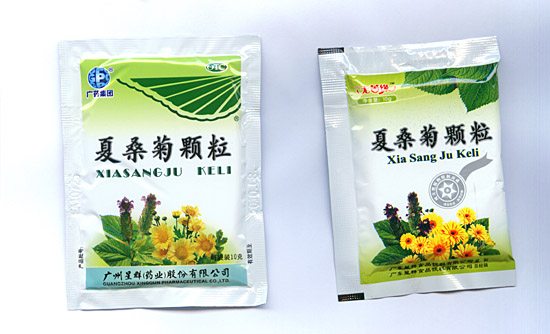 左為廣州星群藥業的產品,右為廣東星群食品“搭便車”的產品。 |