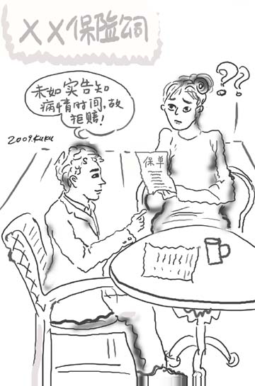 案例:劉先生腸胃不好,由于工作忙一直沒有去醫院檢查,每次肚子疼就吃一些胃藥來減輕病痛。2006年12月30日,他遇到了一位保險公司業務員上門推銷保險,就購買了10萬元的重大疾病保險。 在填寫投保單健康告知欄目時,關于“最近5年是否曾有腹痛癥狀和最近有沒有服用藥物”詢問內容,劉先生咨詢業務人員是否需要將自己的胃痛填寫上,業務人員問劉先生是否在醫院有病例證明,劉先生說沒有,業務人員就說沒事,讓劉先生不要填寫。劉先生當時就按照業務人員的說法在此項勾選了“否”。 2008年1月,劉先生忽感身體不適,胃部奇痛,到醫院就診。醫生問詢劉先生之前胃部是否有過毛病,劉先生說胃疼史有4年并服用過胃藥,醫生將劉先生口述寫入了病例。經過全面檢查,劉先生被確診為胃癌晚期。后診治無效,劉先生不幸病故,所花醫療費共計14萬元。 事故發生后,劉先生家屬劉太太及時通過全國服務熱線報了案。經審核,資料齊全,公司予以受理。但15個工作日后,保險公司下發了拒賠通知單,拒賠理由為:被保險人病例中本人陳述有4年胃痛史,早于投保時間,但被保險人劉先生在投保時并未如實告知胃痛情況,未履行如實告知義務,故保險公司拒絕賠償。