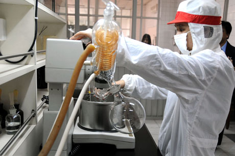 漳州市現已投產開業的臺資企業逾1100家,實際到資約53億美元。圖為漳州大型臺農企業———東海冷凍食品有限公司的工作人員在農殘檢測中心實驗室內進行檢測工作。新華社記者