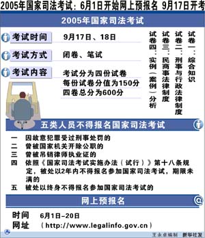 2002年3月30日,首次國家司法考試在全國統一舉行?荚嚍槠趦商,全國分設12860個考場,有36萬多名考生參加考試。根據修改后的法官法、檢察官法和律師法,國家司法考試成為中國初任法官、檢察官和律師的必經之檻,每年舉行一次。 |
