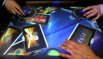 層出不窮的科技產品瓜分著市場和金錢,也影響著國家的支配力,技術和商業秘密的競爭勢必是激烈無情的。圖為在美國拉斯韋加斯舉辦的2009年國際消費電子展上的NBC電視臺與微軟公司共同推出的桌面屏幕。新華社記者張巖攝 |