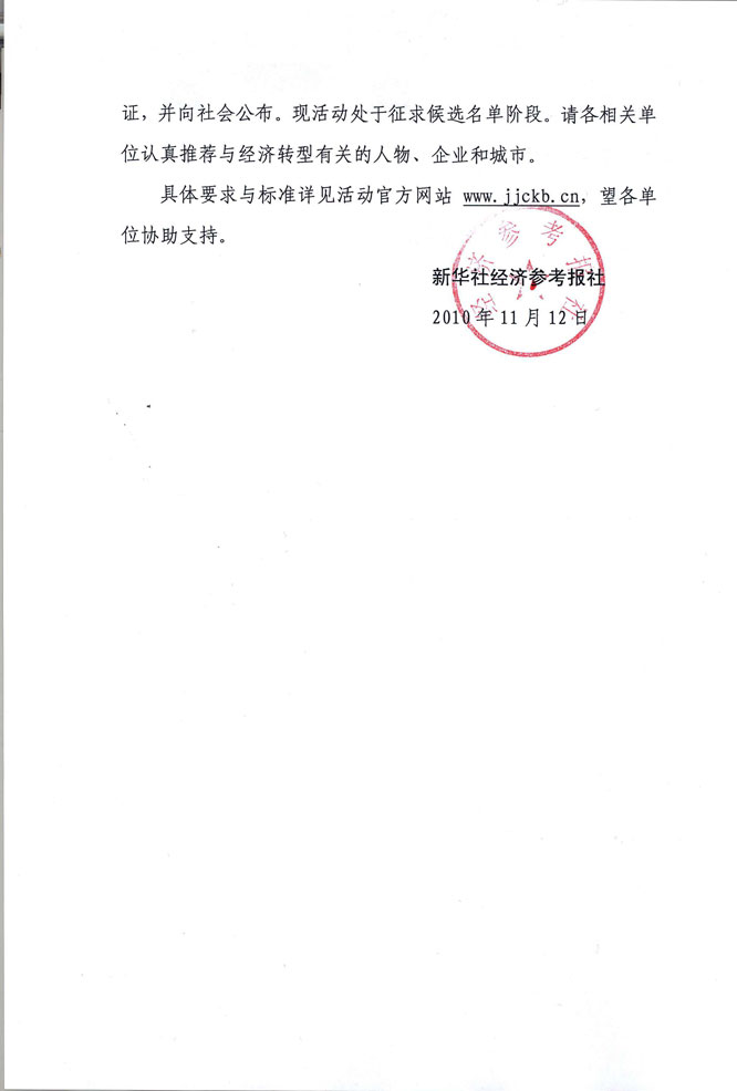 首屆“轉型2010中國經濟十大領軍人物、企業、城市”活動通知