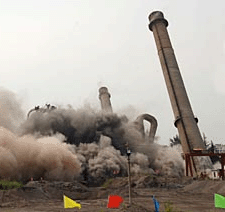 | 2007年9月5日,山東炸響拆除小火電“全國第一爆”。山東省微山湖煤電公司8臺燃煤小火電機組的主廠房和兩座煙囪被爆破拆除。 |
