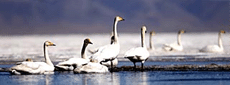 | 青海湖越冬大天鵝數量創歷史最高紀錄,這是在青海湖冰面上休息的大天鵝(2008年3月1日攝) |