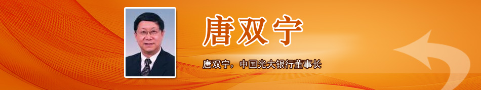 | 人物背景 | 唐雙寧 現任中國光大(集團)總公司董事長、黨委書記, 中國光大銀行股份有限公司董事長、黨委書記 歷任中國人民建設銀行沈陽市分行副行長 中國人民建設銀行遼寧省分行行長助理 中國人民銀行遼寧省分行黨組成員兼沈陽市分行行長、黨組書記 中國人民銀行信貸管理司司長 中國人民銀行貨幣金銀局局長 中國人民銀行銀行監管一司司長 中國銀行業監督管理委員會副主席、黨委委員(來源:中國光大銀行) | |