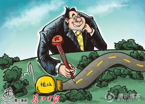 近日,有網友在論壇爆料山西大同市靈丘縣修建了一長約2000米的水泥路,路盡頭約四五十米處為該縣交通局局長家的祖墳,村民戲稱此路為“上墳路”。該局長回應稱修建此路完全是為了開發旅游景點,不存在謀私。(7月20日《三湘都市報》)