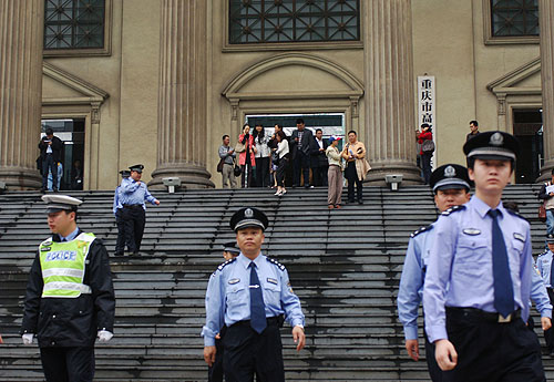 死刑可能是遏制貪腐犯罪的一個辦法,但未必是最有效的制度。圖為5月21日,文強案二審時重慶市高級人民法院的門前。當日,重慶市高級人民法院作出維持原判決,判處文強死刑、剝奪政治權利終身并處沒收個人全部財產的判決。新華社記者