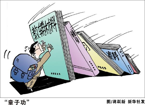 新學期開學了,中小學生們背著書包又走進了學堂。記者長期跟蹤調查發現,不少中小學生沉重的書包中充塞著各種各樣的教輔書,有的書包中教輔書重量遠超過教材書重量。更甚的是,一些教輔書良莠不齊、魚目混珠,低劣、拼湊、抄襲的居多,有的甚至錯誤百出、以訛傳訛,對孩子們造成誤導和傷害,令人擔憂!新華社發