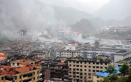為重建災區,我國通常采取財政緊急撥款、社會募捐等方式來籌集資金,而保險賠付卻十分匱乏。 圖為汶川地震后的北川。資料照片 |