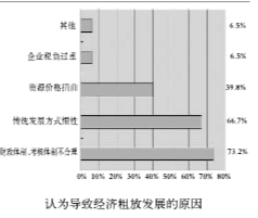 “指揮棒”效應。66.7%的領導干部選擇“傳統發展方式的巨大慣性”。39.8%的領導干部選擇“資源價格長期扭曲,粗放型發展仍有一定市場”,說明資源要素價格長期壓低,無形中助長了高投入、高能耗、高污染、低效率行業的擴張發展。6.5%的領導干部認為“企業稅負過重,創新動力不足導致不愿轉變發展方式”。另有部分領導干部補充指出,“地方政府急功近利”、“各級黨政領導考核評價、提拔使用的機制不科學”等。