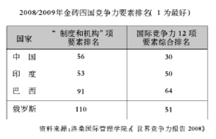 第三,金磚國家的傳統競爭優勢逐漸弱化。首先,廉價的資源供給將逐漸終結。對于中印兩個加工制造國來說,大宗商品廉價時代的終結將對其廉價國際競爭優勢產生巨大沖擊。而對于俄羅斯、巴西和南非等資源型國家來說,不可再生資源的開發峰值年份將逐漸到來,其建立在資源出口基礎上的經濟增長也是不可持續的。其次,“人口紅利”衰減與低價勞動成本時代逐漸終結,不同程度地對金磚國家的經濟發展構成了威脅。再次,低成本資金供給潛力衰減。隨著金磚國家工業化進程的加快和完成,其與發達國家產業結構的趨同和發展水平的逐漸接近,使得以往緊密的產業垂直分工(產業內)協作度降低,利用外資水平相應下降,這些均要求金磚國家轉變高投資驅動發展模式。而國際資本對投資環境質量和回報要求的提高,也將增大未來金磚國家的引資成本和難度。