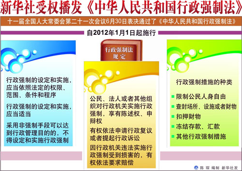 明年1月1日,《行政強制法》就將正式實施!缎姓䦶娭品ā返耐ㄟ^和即將施行是我國人權保障和法治建設的一件大事,是推進我國法治國家和法治政府建設進程的重要舉措。