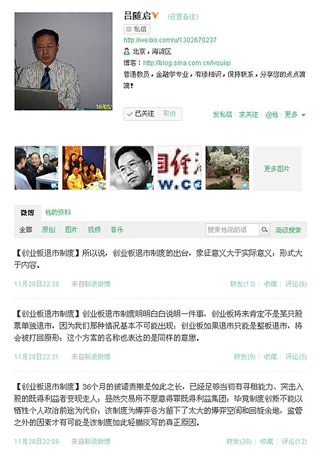 11月28日,深交所出臺完善創業板退市制度的意見征求稿,明確創業板兩個退市制度,即連續受到交易所公開譴責以及股票成交價格連續低于面值。28日晚,北京大學經濟學院金融系副主任呂隨啟在新浪網連續發布微博分析,新規出臺象征意義大于實際意義,形式大于內容。