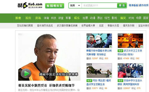 網絡視頻的發展很快,但引發的著作權侵權糾紛亟待重視。圖為酷6網站的頁面。資料照片 |