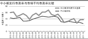 圖四:中小板發行市盈率與市場平均市盈率比較