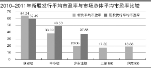 圖二:2010-2011年新股發行平均市盈率與市場總體比較
