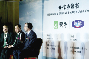 攝 | 根據協議,蒙牛擁有合資公司51%的股份,達能持股49%。盡管雙方對合資公司投資額諱莫如深,但據記者多方打探,證實雙方總投資接近8億人民幣。這也是目前為止,我國酸奶市場上最大規模的國際合作項目。 蒙牛集團總裁楊文俊介紹,作為全球最大的酸奶企業,達能擁有最先進的酸奶制造工藝和研發技術,新的合資公司將為中國乳業帶來科技革新。達能亞太區乳制品總裁皮埃爾·顧德和也表示,在過去幾年內,蒙牛已經建立起了遍布全國的分銷網絡,這應當是雙方攜手進軍中國乳制品市場的一個良機。 據介紹,蒙牛將把其在全國擁有的10個酸奶工廠資產全部并入合資公司,而達能則以現金方式入股,同時,考慮到蒙牛的品牌價值,達能又另外付出一部分不菲的資產溢價。法國達能中國區主席秦鵬透露,合資公司將在北京通州、內蒙古呼和浩特、安徽馬鞍山成立三家公司。 昨天,雙方并沒有過多談及相互“戀愛”過程,但蒙牛乳業董事長牛根生強調公司進行國際聯姻的兩大條件:首先一定要選擇合作領域的“世界冠軍”結成伙伴,其次就是要保持股權優勢。
