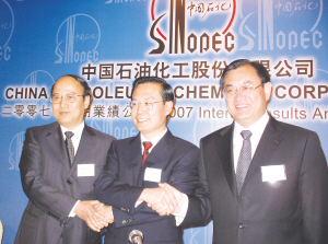 | 中國石化高層(中為董事長蘇樹林、右為總裁王天普、左為財務總監戴厚良)集體亮相香港 | 短板不短