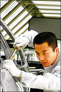 汽車博覽會歷來是各大汽車生產企業角逐的舞臺,它不僅展示企業產品,擴大品牌影響,而且是企業綜合實力的較量。多年來,一汽大眾的展車都是花大筆錢聘請德國專家來做,而且每次都不讓中方員工參與,理由是怕影響展車質量。 “外國人能做到的我們也能做到!北е@樣的信念,王洪軍悄悄地開始揣摩探索。 一天下班,王洪軍走進了展車制作現場,看見德國專家焊的行李箱搭接縫沒焊完,他就試著焊了一段。第二天德國專家發現后,厲聲問道:“這是誰干的?”王洪軍的臉一下子紅了。德國專家拍拍他的肩膀說:“小伙子,我都干了23年了。干不了最好別亂動! 那天晚上,王洪軍失眠了。他深知干展車的功夫不是一朝一夕能練成的,但他不能等23年啊。他再次鉚足了勁揣摩做展車的技術。 功夫不負有心人。經過幾年的反復實踐和摸索,王洪軍掌握了壓痕、劃傷、波浪、坑包等“白車身”表面缺陷的處理絕技,總結出“手掌放平,著力點集中,勻速運行,出手慢,回手快”的整修操作方法,創造出包括轎車“白車身”表面缺陷修復法、漆后鈑金缺陷修復和噴漆方法、車身間隙平度超差調整方法、展車制作方法等4個部分50多項100多種簡捷適用的轎車鈑金快速修復法,并出版了《王洪軍轎車車身維修調整方法》。 。玻埃埃衬辏丛,王洪軍的創新成果經一汽大眾中德質保專家組嚴格評審鑒定,被正式命名為“王洪軍轎車鈑金快速修復法”。專家一致認為,這一成果具有重大的理論突破,對車身表面修復有很高的應用價值,整體研究成果居國際先進水平。 從這年開始,一汽大眾啟用了王洪軍的展車制作法,從此結束了聘請外國專家做展車的歷史。當年,王洪軍只用兩周就出色地完成了德國專家要1個月才能完成的展車制作任務。近3年來,王洪軍制作展車189臺,為公司節約費用700多萬元。 王洪軍用他的智慧和汗水為一汽爭得了榮譽,為祖國的汽車工業作出了杰出的貢獻。他先后榮獲吉林省和全國“五一”勞動獎章,被授予全國機械行業“技能大師”、技術創新“十佳能手”等榮譽稱號。面對接踵而來的各種榮譽,王洪軍說,榮譽屬于過去,創造和奉獻才是應該永遠追求的。 |