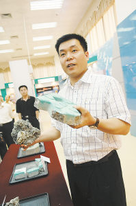 陳澤峰在展示豐泉環保的垃圾處理產品。趙晶攝 |