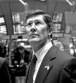 約翰·塞恩的改革動作在常人看來都是那么“大刀闊斧”,其實,他在內部管理上也不乏“細致入微”。在采訪的時候,記者聽到這么一個故事。據說,原來有一專職的理發師服務于紐交所,除了收取小費,該理發師每年還從紐交所獲得2.4萬美元的補貼。約翰·塞恩上任后,堅決對這類事件說“不”,要求取消交易所理發師的崗位。理發師特意找上門去表示可以取消他的補貼,但是希望繼續讓他為交易大廳的交易員服務。但是約翰·塞恩否決了這一提議,他認為,交易所就不應該有理發師這么一個職位。 雖然去紐交所采訪程序復雜,安檢森嚴。但是作為紐交所的CEO,約翰·塞恩更多地像一個學者,而不是華爾街大亨。采訪的時候,他總是很專注地聽,也很認真地跟記者暢談他的戰略和理想。塞恩向記者強調,他接受這份工作不是為薪水。紐約交易所是美國金融市場、乃至全球金融市場重要的組成部分,但是前幾年遇到了一些困難,現在,他有信心幫助紐約交易所保持其在全球金融市場中的地位。 從2004年1月15日正式上任以來,約翰·塞恩以他甚有條理、大刀闊斧的改革,獲得了華爾街的高度贊譽,有好事者已經在預測他的未來之路。塞恩在就職之時曾表示,預計自己將在這個崗位呆上3到5年。如果按5年計算,到2009年,他將可以自由離開,屆時,他仍有足夠的競爭力在華爾街謀一份顯赫的職位。 現年52歲的他,或許正在創造一段華爾街的傳奇。 |