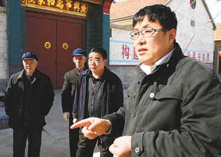 | 王軍(右一)到“村企共建”木李村商議“小康村建設”事宜。杜劍
