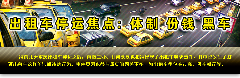 | 11月3日發生的重慶出租車罷運事件可以說是近年來中國城市出租車行業利益紛爭的一個“標本”事件,雖在重慶市政府的介入下得到妥善處理,但由此暴露出的體制性痼疾我們必須高度重視。[詳情] | |