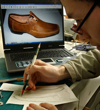 2006年,歐盟對中國皮鞋及童鞋征收為期兩年的16.5%反傾銷稅。對此,溫州制鞋企業積極行動起來,走上了追求質量效益型的轉型之路。隨后,溫州鞋出口增長中呈“質優價升”的態勢。圖為一位溫州制鞋企業的設計師在設計出口皮鞋。新華社記者