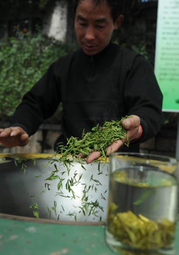 手工炒制是制作上等西湖龍井茶的傳統手法。炒制手法復雜,價格不菲。今年第一鍋手工炒制西湖龍井3月23日終于出爐,雖然比往年遲了近半個月,但新鮮甘醇的茶葉一出鍋就受到了“愛茶人”的追捧,首批售價達到了2500元/斤。新華社發 |
