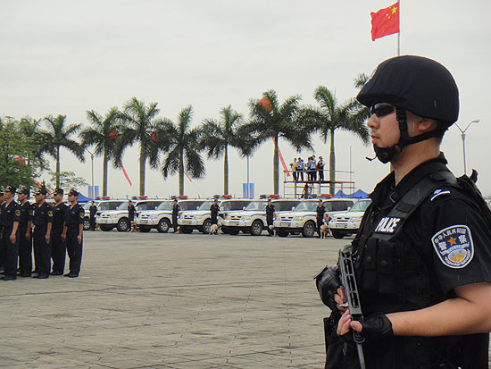 | 海關總署25日上午在廣東虎門舉行儀式,銷毀全國海關近年來查獲的上噸走私毒品。圖為現場四周警察嚴陣以待。 |