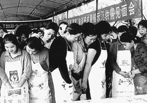 | 參加培訓的戶改人員與用人單位供需見面會現場。本報記者 劉裕國