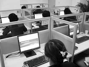 | “虛擬養老院”呼叫中心的接聽員在工作。李俊鋒