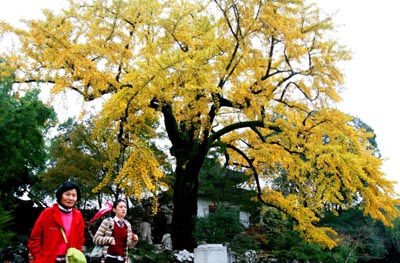 蘇州園林獅子林古銀杏樹“身披金甲”