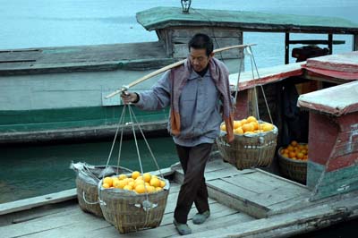 16日上午,重慶奉節縣白帝城鎮一位農民正在運送剛剛收獲的臍橙。今年夏季,重慶遭受百年一遇旱災,“臍橙之鄉”奉節縣利用三峽水庫,及時取水灌溉臍橙樹,保證臍橙不減產。眼下正是臍橙收獲季節,奉節縣農民們反映,今年臍橙收成和去年差不多,依然是個豐收年。