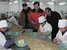 美國蒙特利公園市副市長劉達強參觀慶陽隴東集團的白瓜子加工車間。